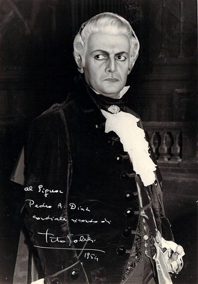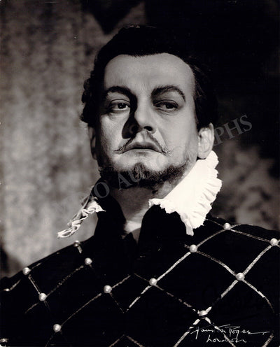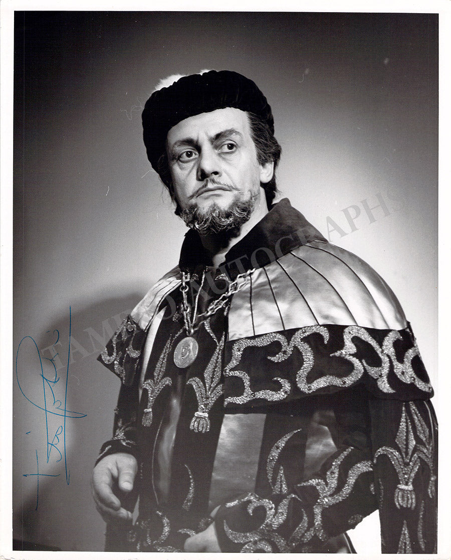 Signed photograph, shown in the title role of Verdi's Simon Boccanegra. Size is 8 x 10 inches, small creases on bottom corners, otherwise in very good condition.