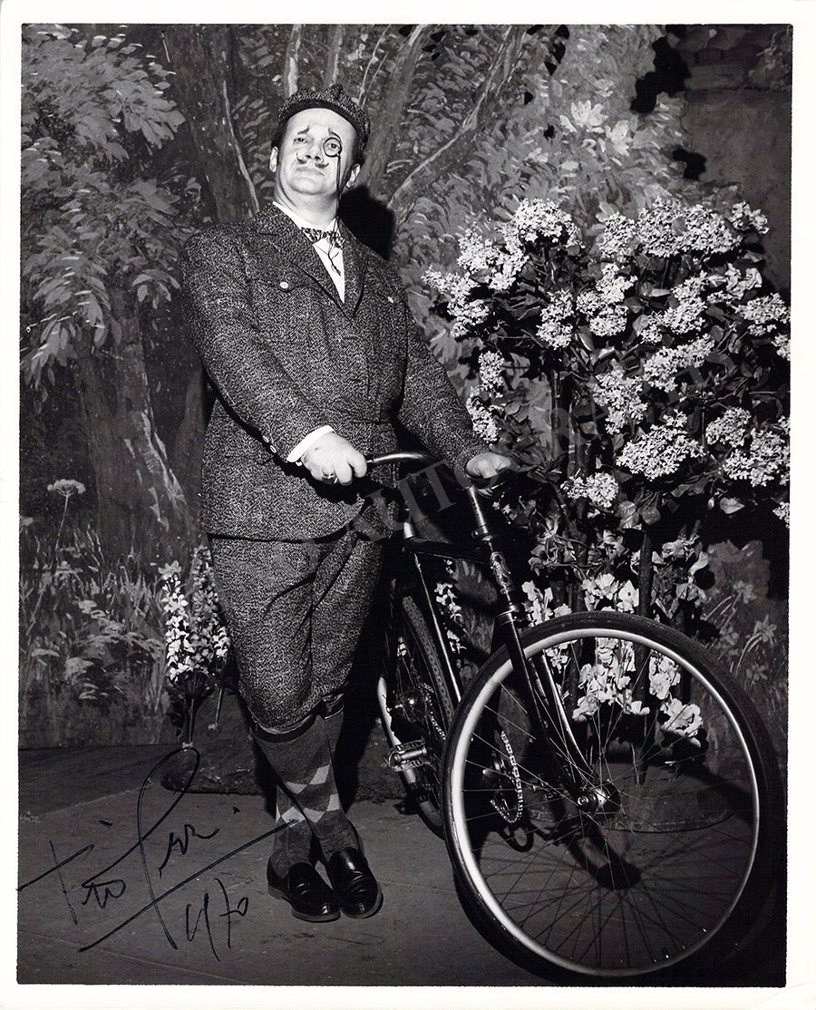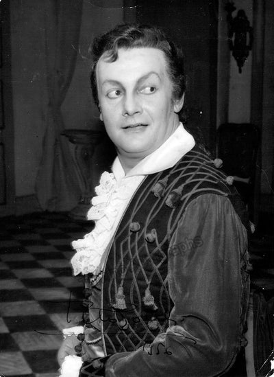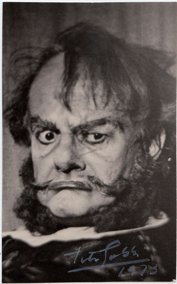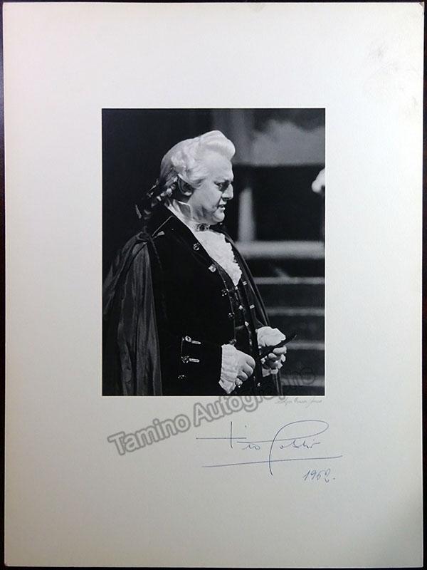 Signed photograph, shown in the title role of Puccini's Gianni Schicchi. Stamped on verso by photographer Erio Piccagliani, La Scala, Milan. Size is 7 x 9.5 inches, small mounting traces on verso, otherwise in very good condition.