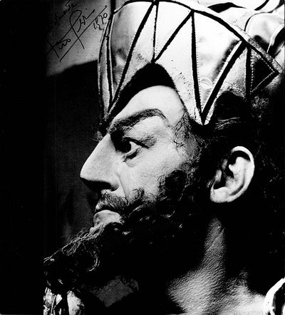 Signed photograph, shown in role (possibly Verdi's Nabucco), dated in 1970. Size is 8 x 9 inches, in excellent condition.