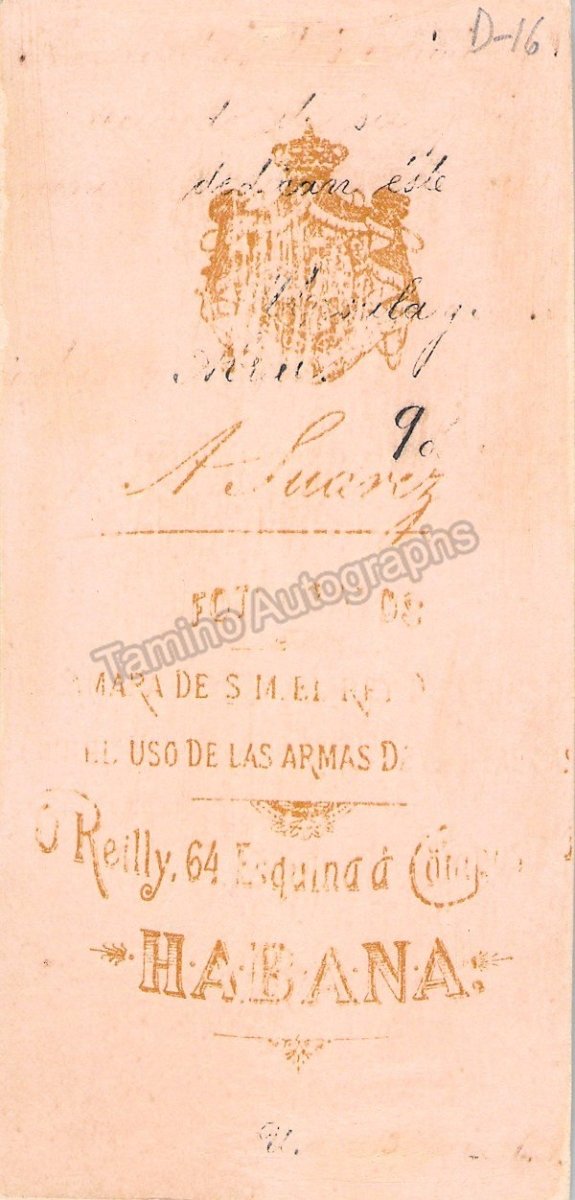 Star Italian baritone (1877-1953), whose real name was Ruffo Titta Cafiero (Ruffo was his first name). He developed a long and very successful career in America and Europe. Signed cabinet photo, shown as himself, dated in Habana in 1915. Photo by J.A. Suarez, Habana. Size is 3 x 6.5 inches, mounting traces on verso, in very good condition.