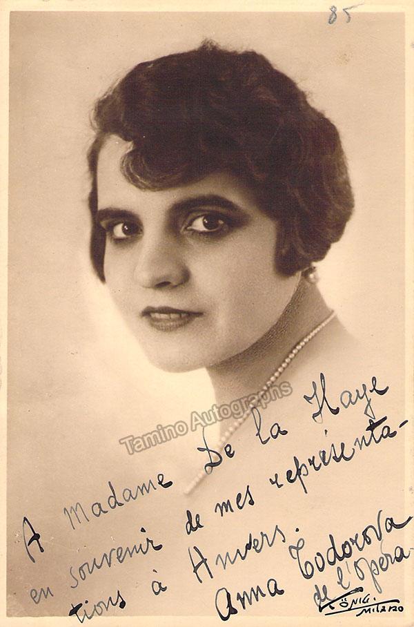 Bulgarian mezzo-soprano (1892-1972), signed photo, shown as herself. Inscribed with short sentiment. Blind stamped by photographer Konig, Milan. Size is 3.5 x 5.25 inches, some wear on edges but otherwise in good condition.