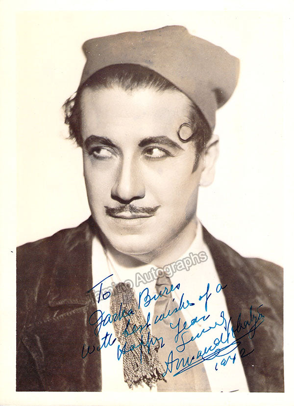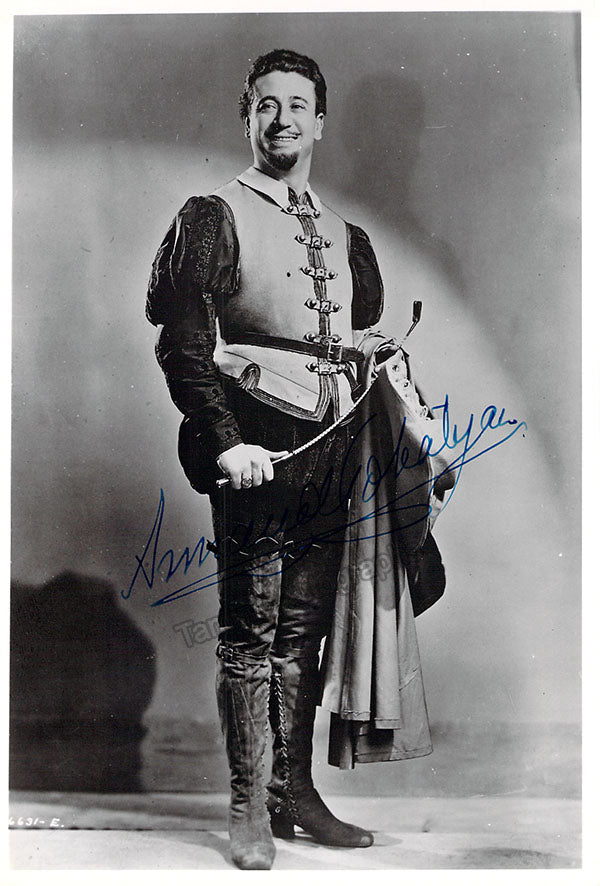 Signed photograph, shown as Turiddu in Mascagni's Cavalleria Rusticana, inscribed and dated in 1942. Size is 5 x 7 inches, in excellent condition.