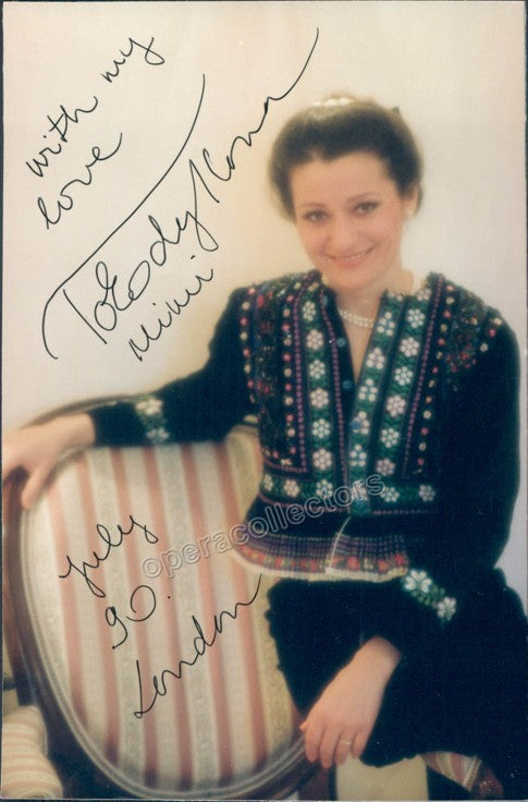 Signed photograph, shown as herself, dated in 1984. Size is 3.5 x 5.5 inches, in excellent condition.