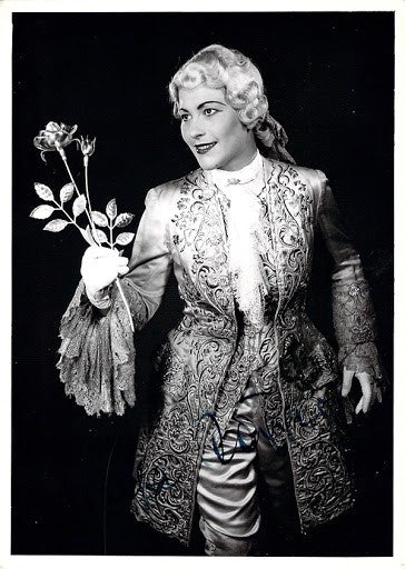 Signed photo postcard of the Austrian contralto (b.1924), shown in role in Strauss' Der Rosenkavalier. Stamped on verso by photographer Rudolf Betz, Munich. Size 4 x 5.75 inches.