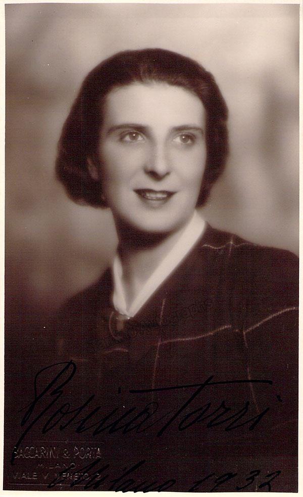 Italian soprano (1898-1975), signed photo postcard, shown as herself, signed in Milan, dated in 1932. Blind stamped by photographers Baccarini and Porta, Milan. Size is 3.25 x 5.25 inches, in excellent condition.
