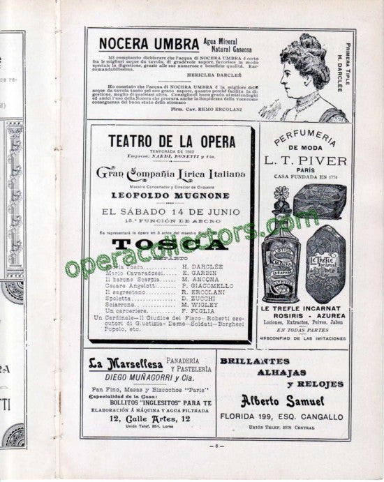 TOSCA - Teatro de la Opera 1902 program - Hariclea Darclee!