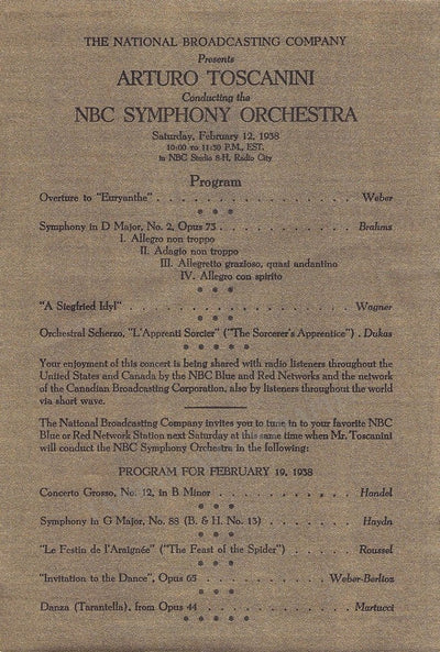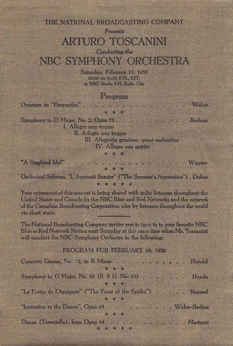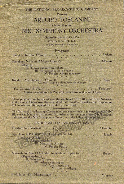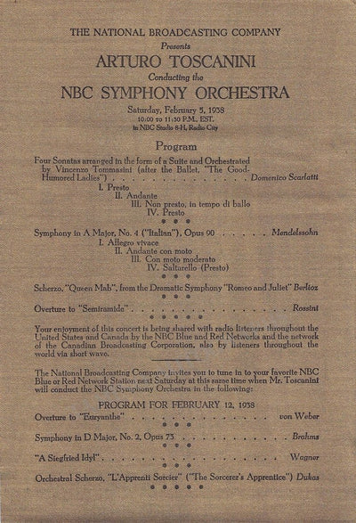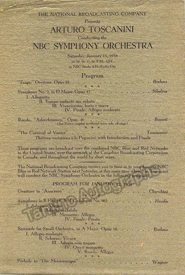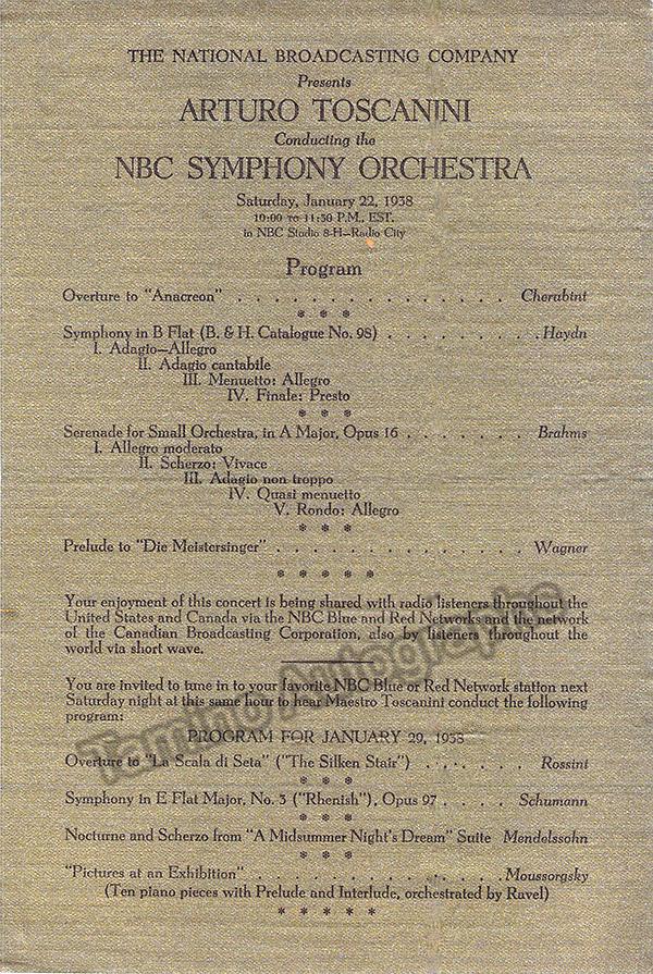 Toscanini, Arturo - NBC Orchestra Concert Program in Golden Cloth 1938 (Various Programs)