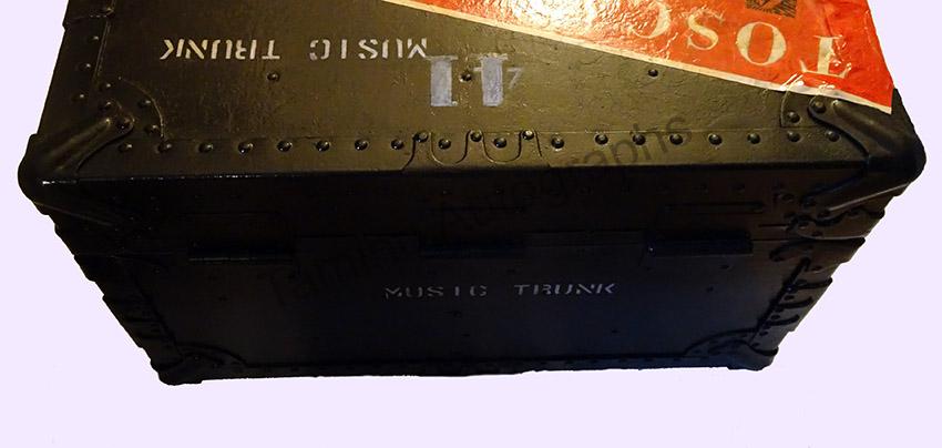 Trunk is 17 inches high, 27 inches wide and 16.5 inches deep, it is empty and has a separate compartment inside (on the trunk´s cover), 2 latches and one central lock (key is missing), 2 original leather handles, a diagonal banner on the top with Toscanini´s name and the NBC Orchestra.