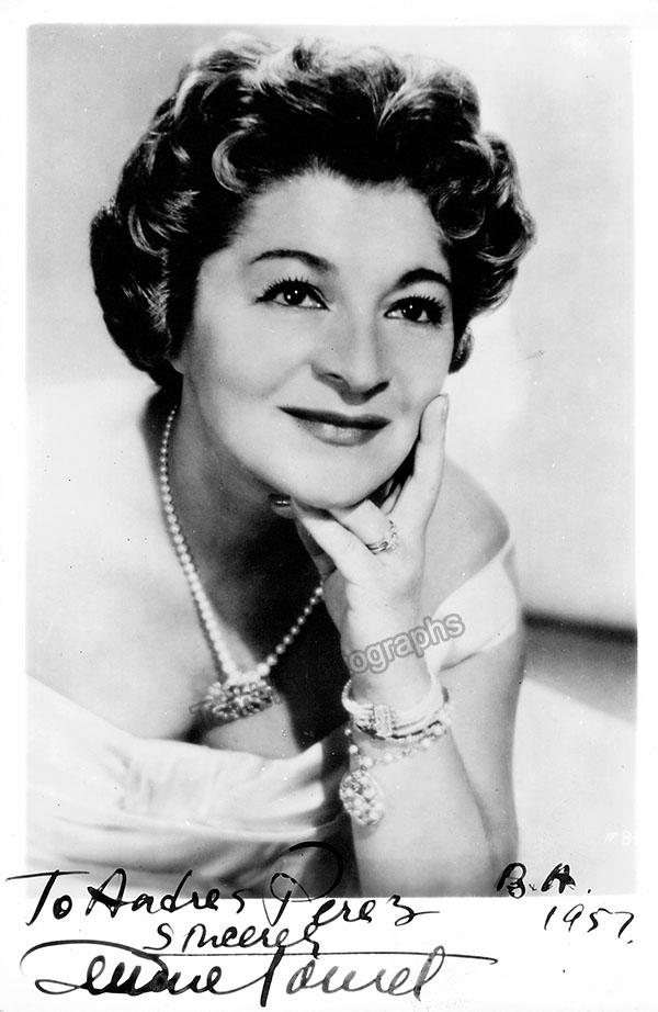 Russian-born American mezzo (1900-1973), signed photo, shown as herself. Inscribed and dated in 1957. Stamped on verso by Carmen Reproducciones photography studio. Size is 4.6 x 6.9 inches with some bending on corners but otherwise in very good condition.