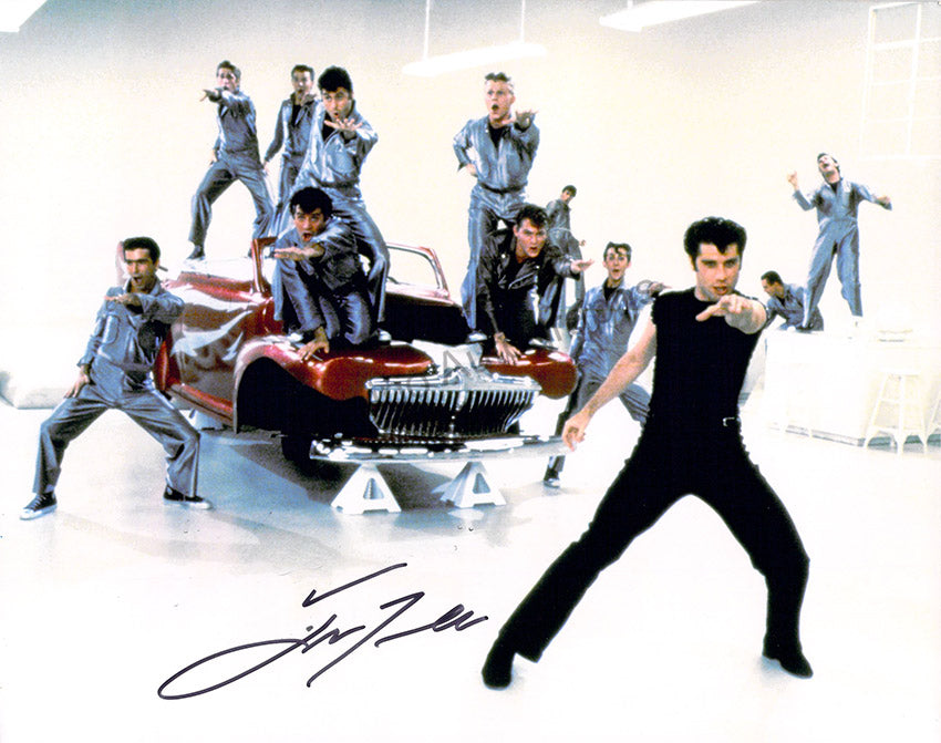 Fantastic modern print promo color movie-still photograph from the musical film "Grease" (1978), signed by him. Size is 9.9 x 7.9 inches, in excellent condition.