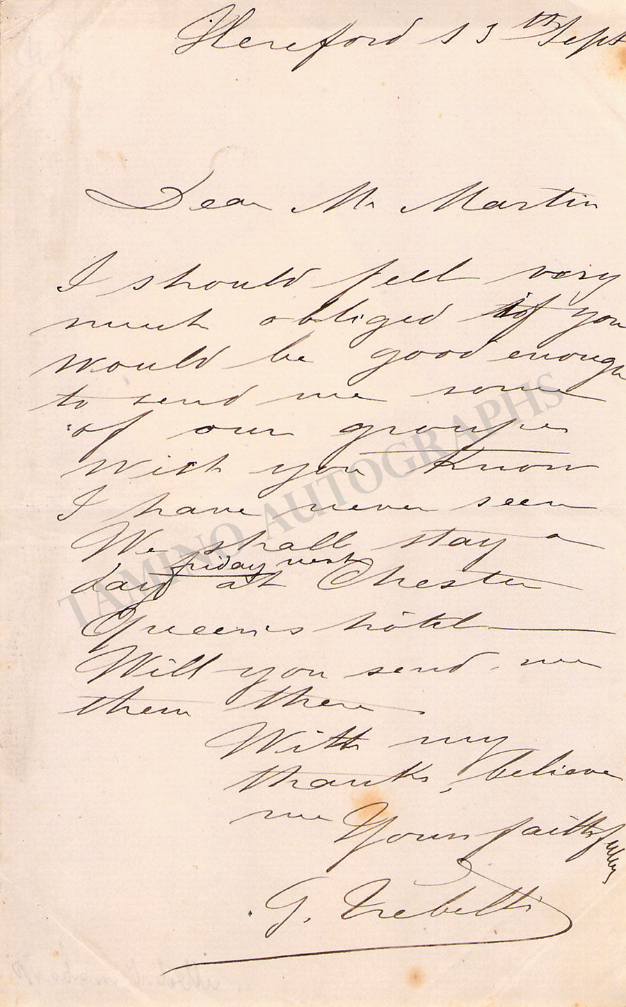 Autograph note signed, 1 page, written in English. Size  is 4.5 x 7 inches, some mounting traces (scotch tape) on left side of the paper, otherwise in excellent condition.