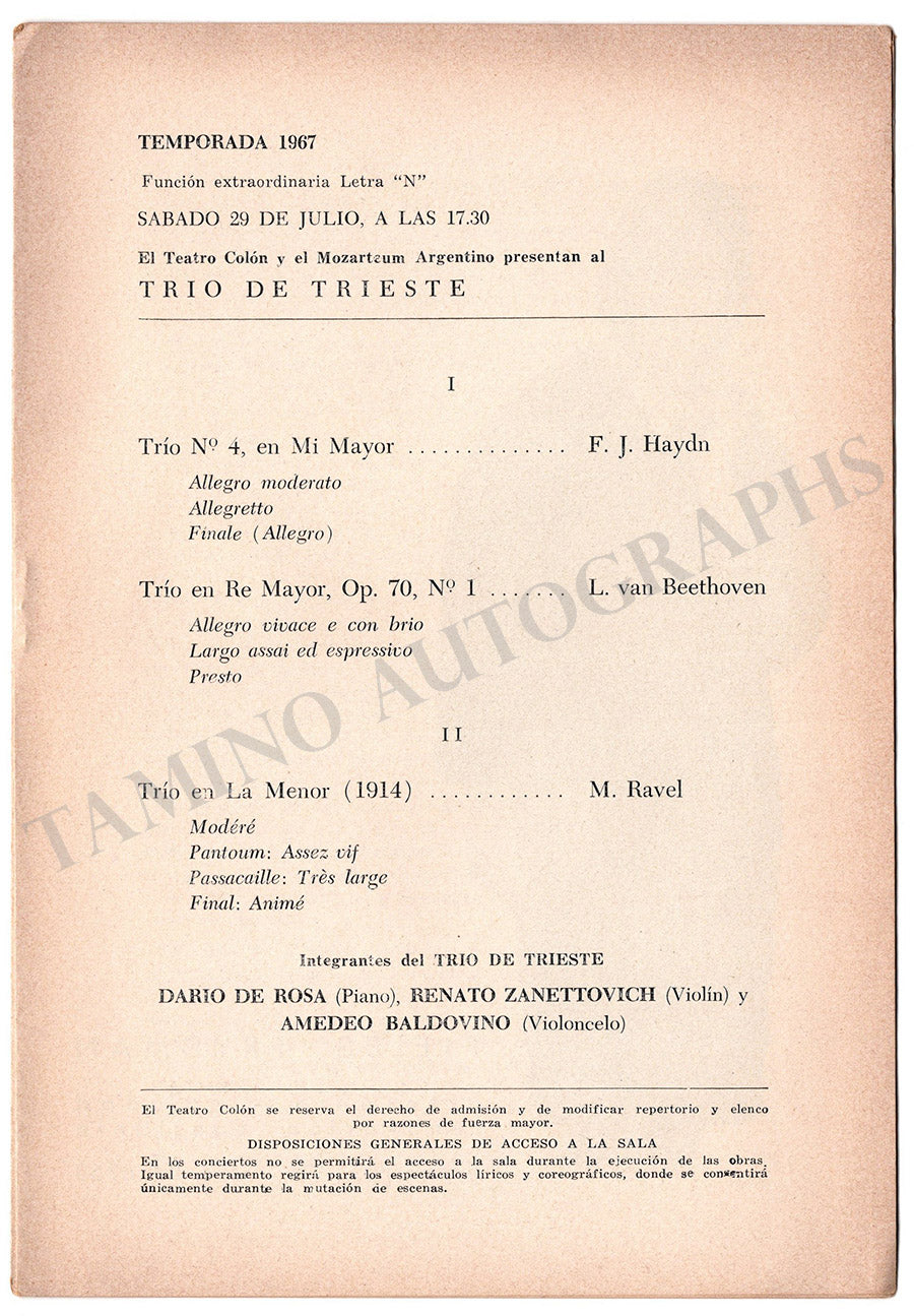 Unsigned program for a performance of the Italian ensemble at Teatro Colon, Buenos Aires, on July 29, 1967.