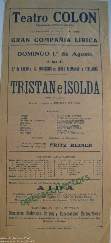 Tristan und Isolde-Aida - Teatro Colon 1926 - Kipnis-Reiner-Muzio-Laur