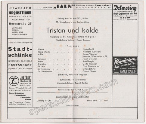 Eugen Jochum conducting Wagner - Staatsoper Hamburg program, 10 May 1935. Tristan und Isolde. Complete program.