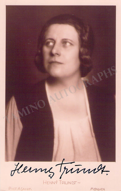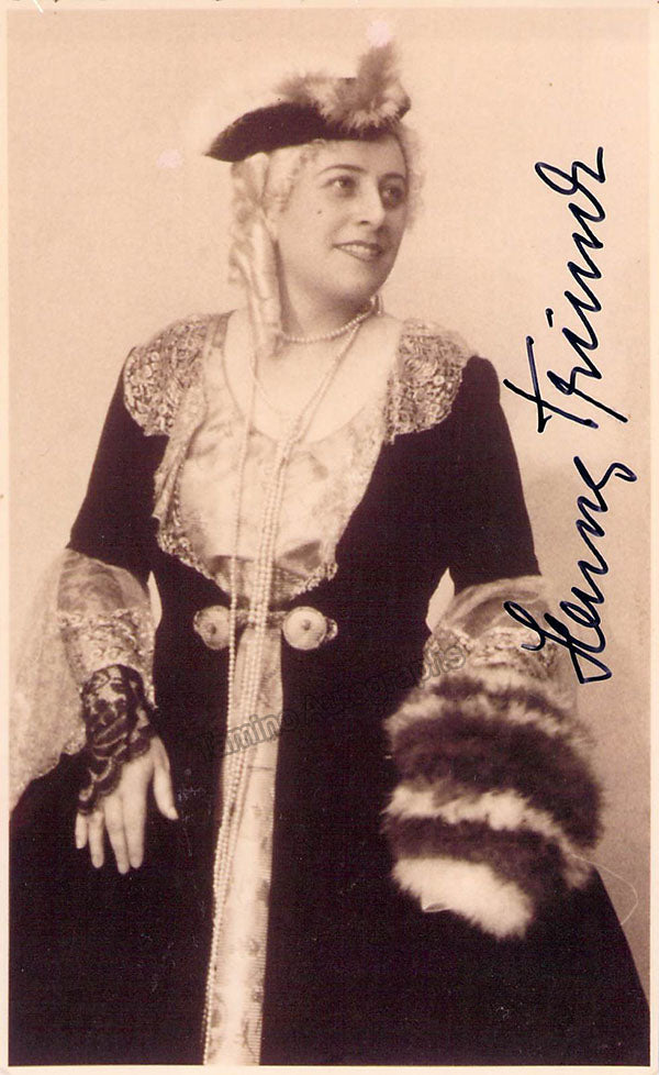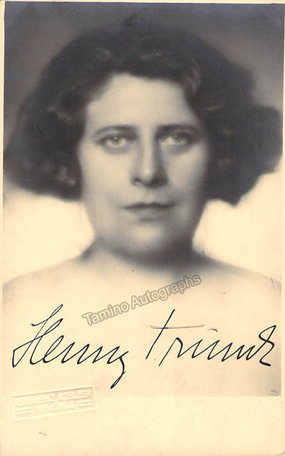 Signed postcard photograph, shown as herself. Blind stamped on front and stamped on verso by Residenz photo studio, Vienna. Size is 3.25 x 5.25 inches, in very good condition.