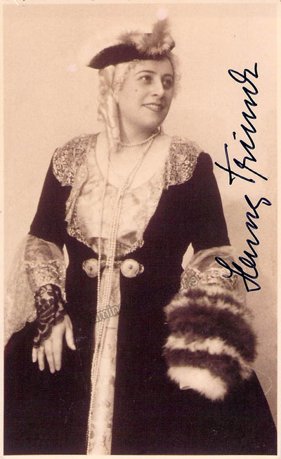 Signed photograph, shown as the Marschallin in Richard Strauss's Der Rosenkavalier. Size is 3.25 x 5.25 inches, in excellent condition.
