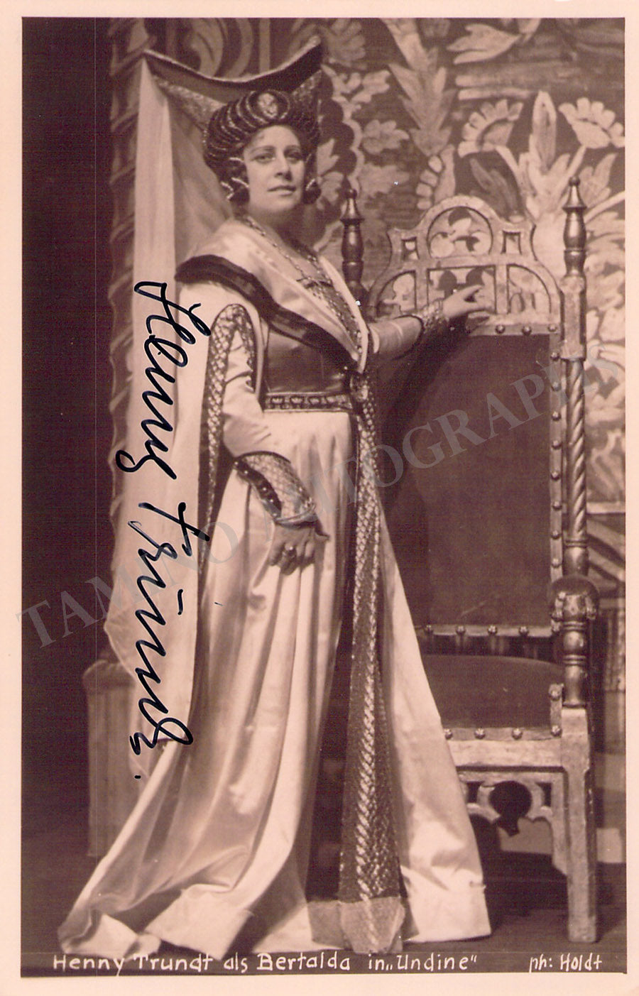 Signed photograph, shown as Bertalda in Lortzig's Undine. Photo by Holdt, Munich. Size is 3.5 x 5.5 inches, in excellent condition.