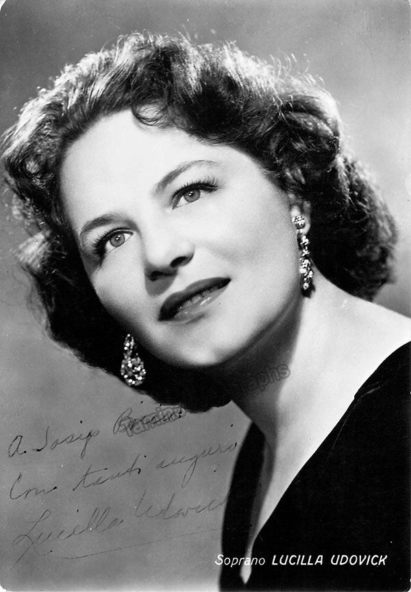Signed and inscribed photo of the American soprano shown in role. Stamped on verso by photographer Carmelo Canudas, Buenos Aires, Argentina. Size is 4.75 x 7 inches, in excellent condition.