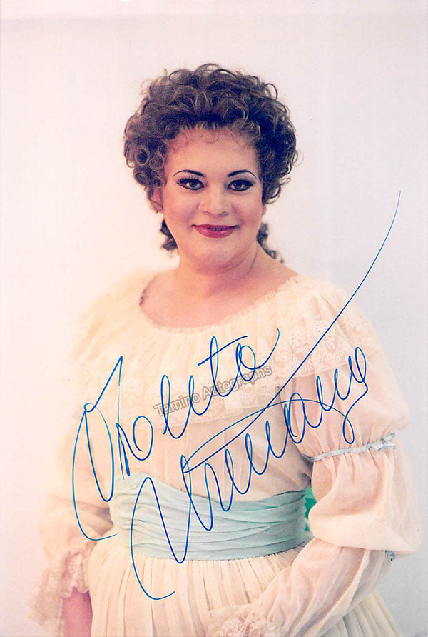 Nice color photograph signed by her in 2003, shown as Maddalena in Giordano's opera Andrea Chénier; sticker on verso by photographer Terry (Vienna). Size is 5 x 7.3 inches, in excellent condition.