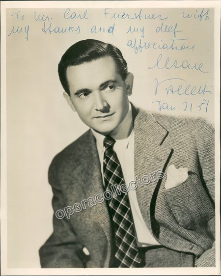 (1922 - 2000) was an Italian operatic tenor, one of the leading tenore di grazia of the postwar era. He was much admired for his polished vocal technique, his musical refinement and elegance, and beauty of tone. Signed photo, shown as himself, 8 x 10 inches, dated 1957, inscribed, paper surface is a bit irregular due to moisture.