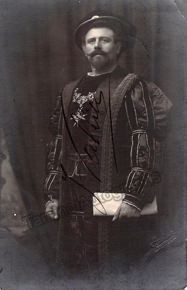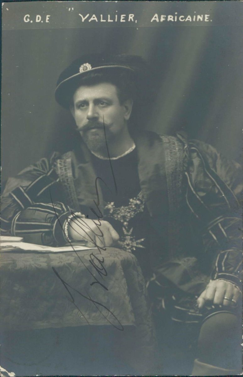 Signed photo postcard, shown in role in Meyerbeer's L' Africaine. Size is 3.5 x 5.5 inches, in excellent condition.
