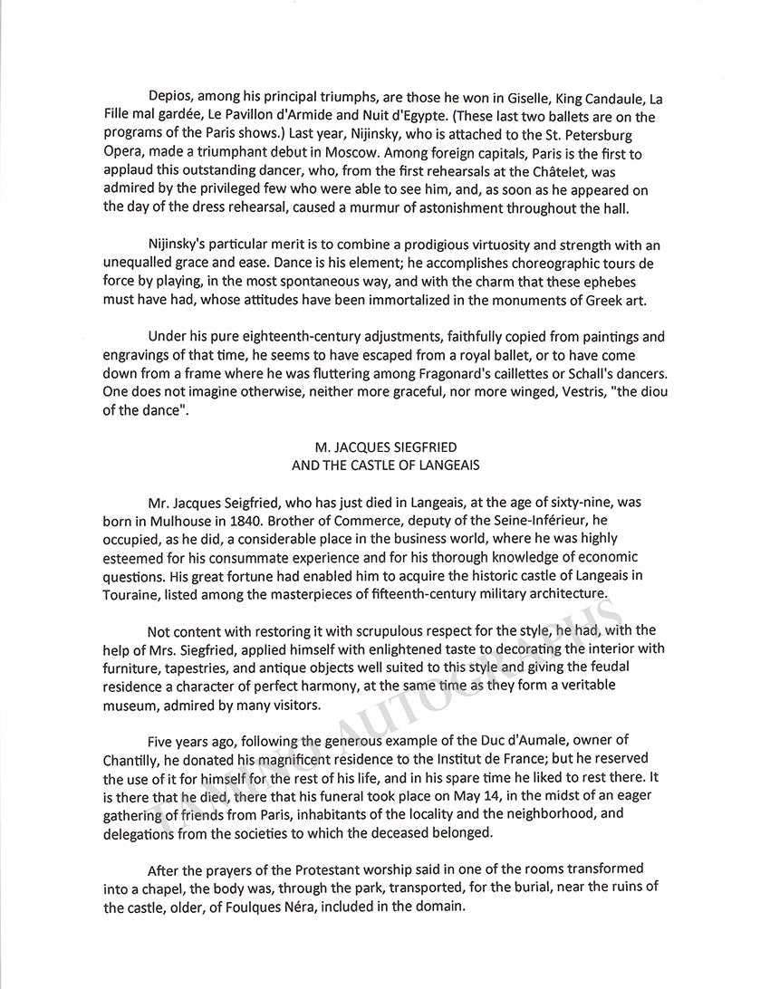 This is an exceedingly rare item from a crucial moment in young Nijinsky´s career, now starting outside Russia, on tour.