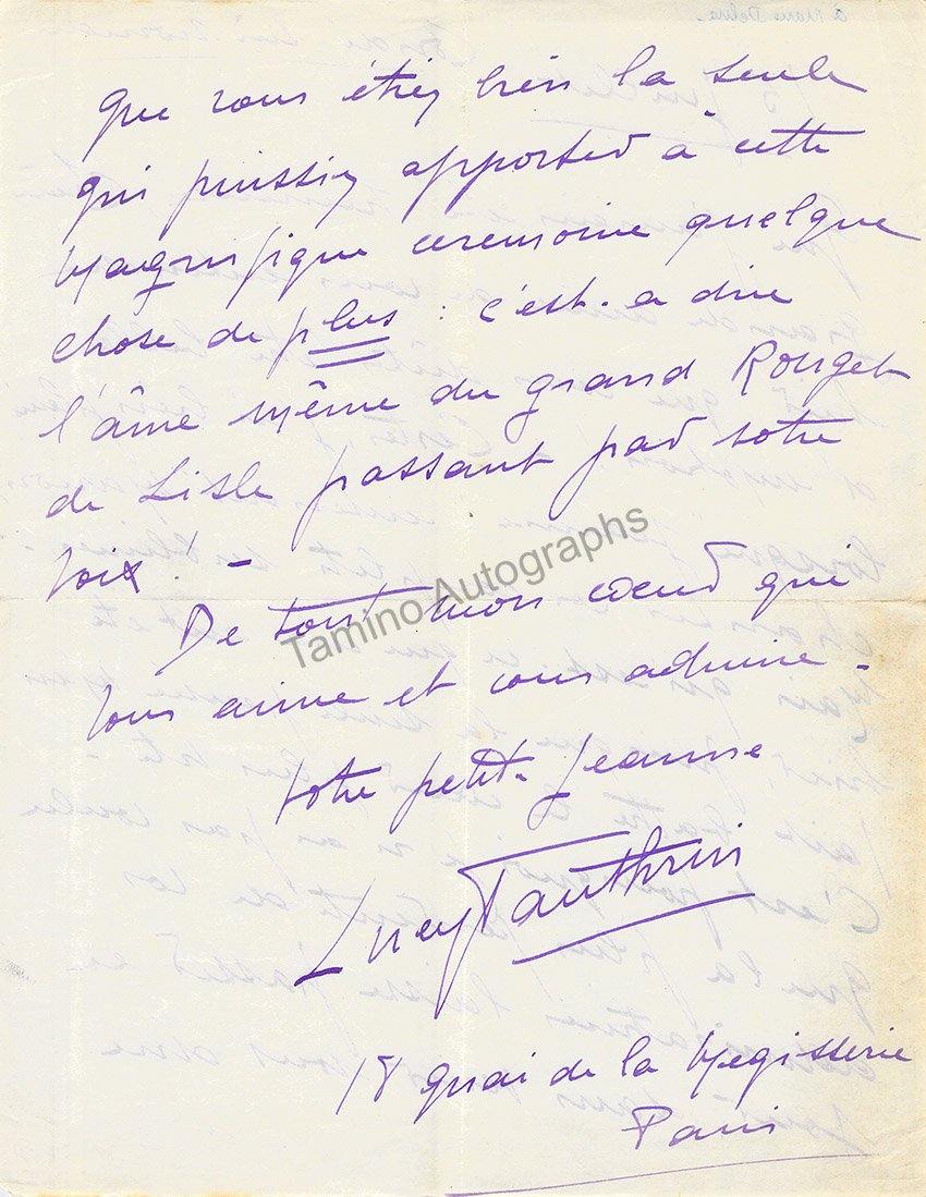 Vauthrin, Lucy - Autograph Letter Signed - Tamino Vauthrin, Lucy - Autograph Letter Signed - Tamino