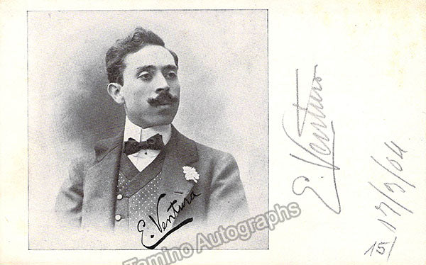 Italian tenor (1873-1931), signed postcard half-tone photograph, shown as himself. Size is 3.5 x 5.5 inches, in excellent condition.