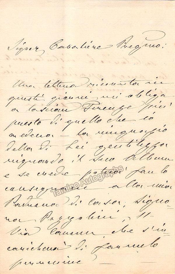 Autograph letter signed, 2 pages of a folded 4-page document, written in Italian, sold untranslated. Size is 5.25 x 8.25 inches, in excellent condition.