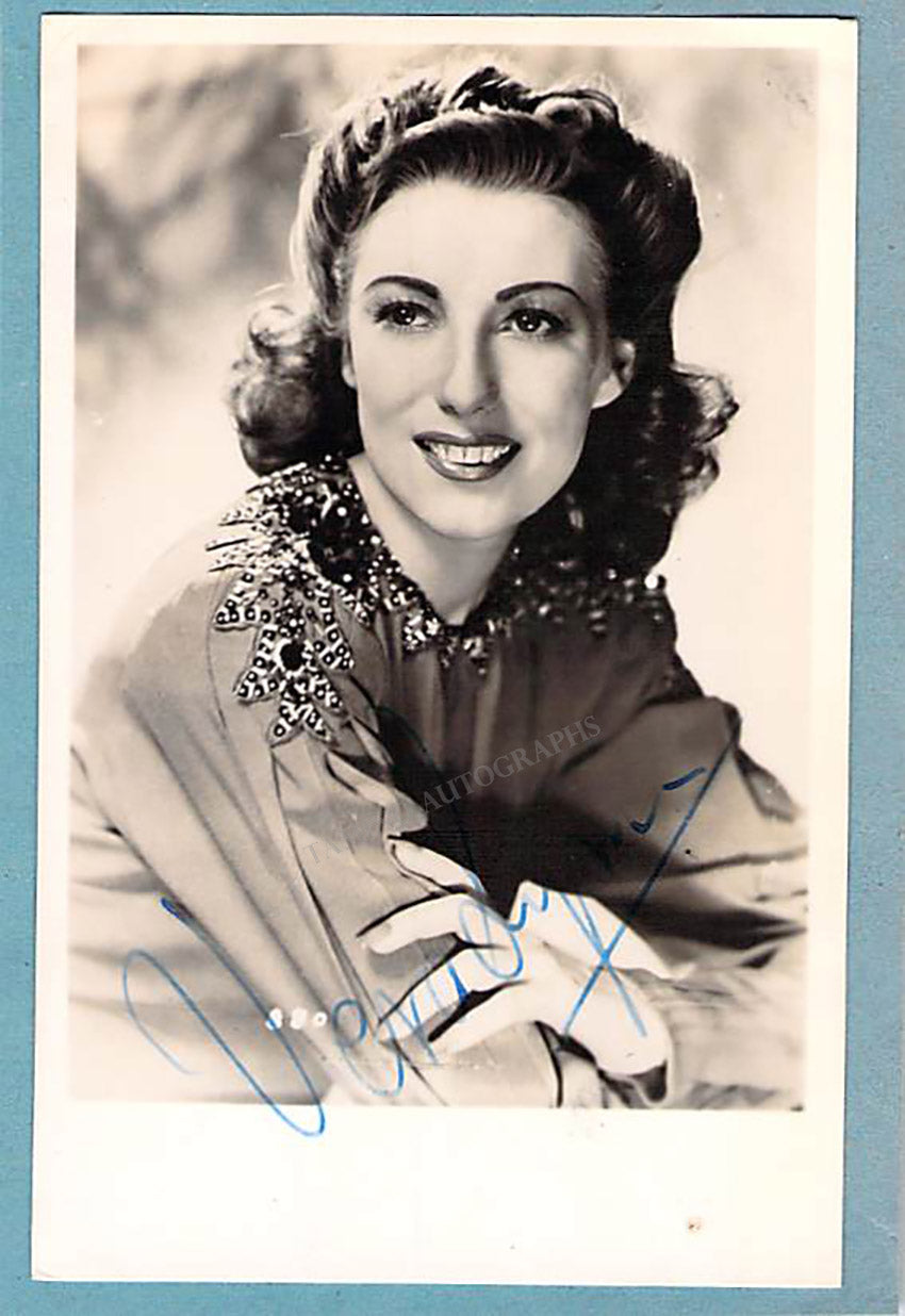 Fine photo postcard mounted on a slightly large light blue cardboard signed by her, shown young. Total size is 3.8 x 5.6 inches, in excellent condition.