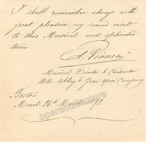 Vianesi, Auguste - Autograph Note Signed, 1892