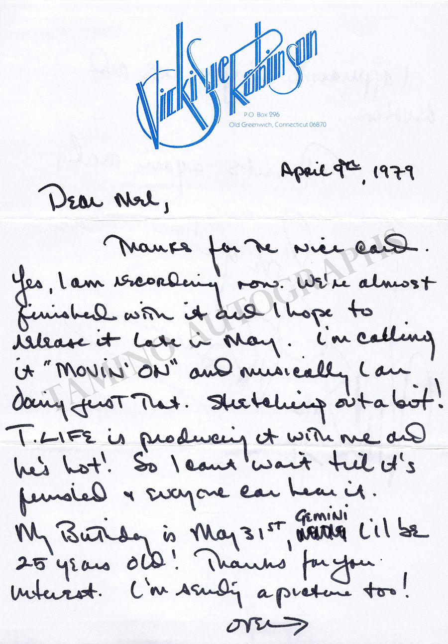 Robinson, Vicki Sue - Autograph Letter Signed 1979 Robinson, Vicki Sue - Autograph Letter Signed 1979