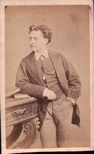 Unsigned vintage CDV, shown as himself, a photo by Mora, New York. Size is 2.5 x 4 inches, in excellent condition.