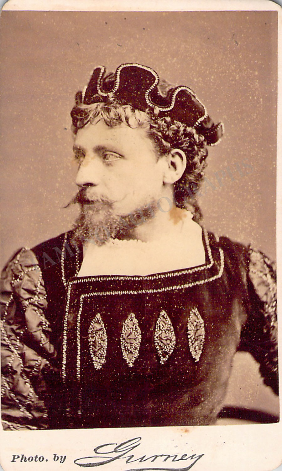Unsigned vintage CDV, shown in role, a photo by Gurney, New York. Size is 2.5 x 4 inches, mounting traces on verso, otherwise in excellent condition.
