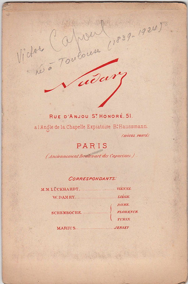 Beautiful cabinet photograph of the French tenor by Nadar, Paris. Size is 5 x 7 inches, in excellent condition.