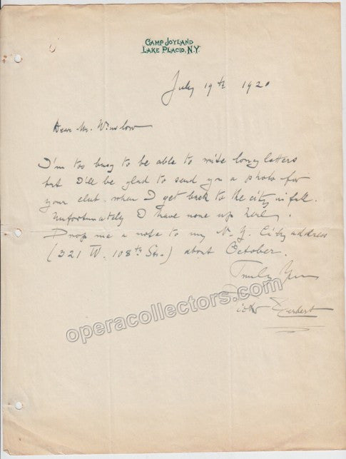 Herbert, Victor - Signed Photo with Autograph Signed Letter
