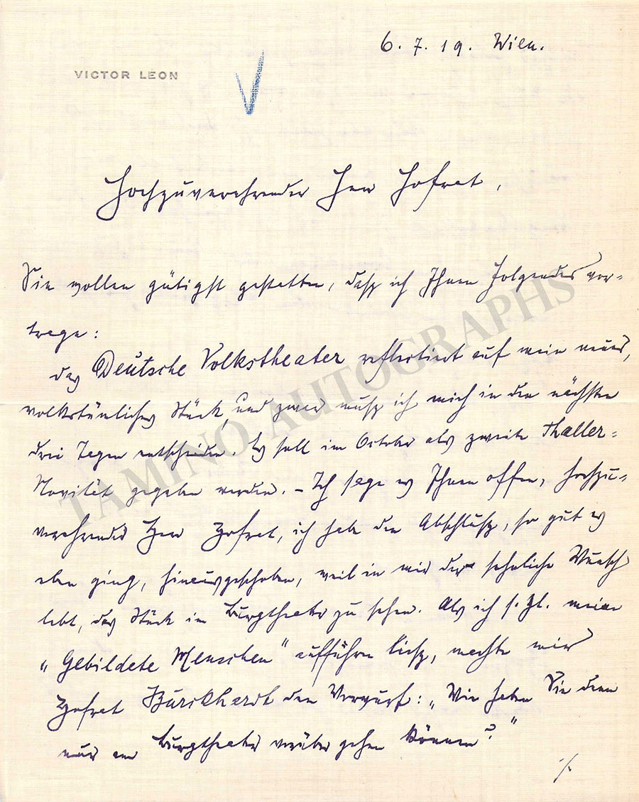 Leon, Victor - Autograph Letter Signed 1919 Leon, Victor - Autograph Letter Signed 1919 Leon, Victor - Autograph Letter Signed 1919
