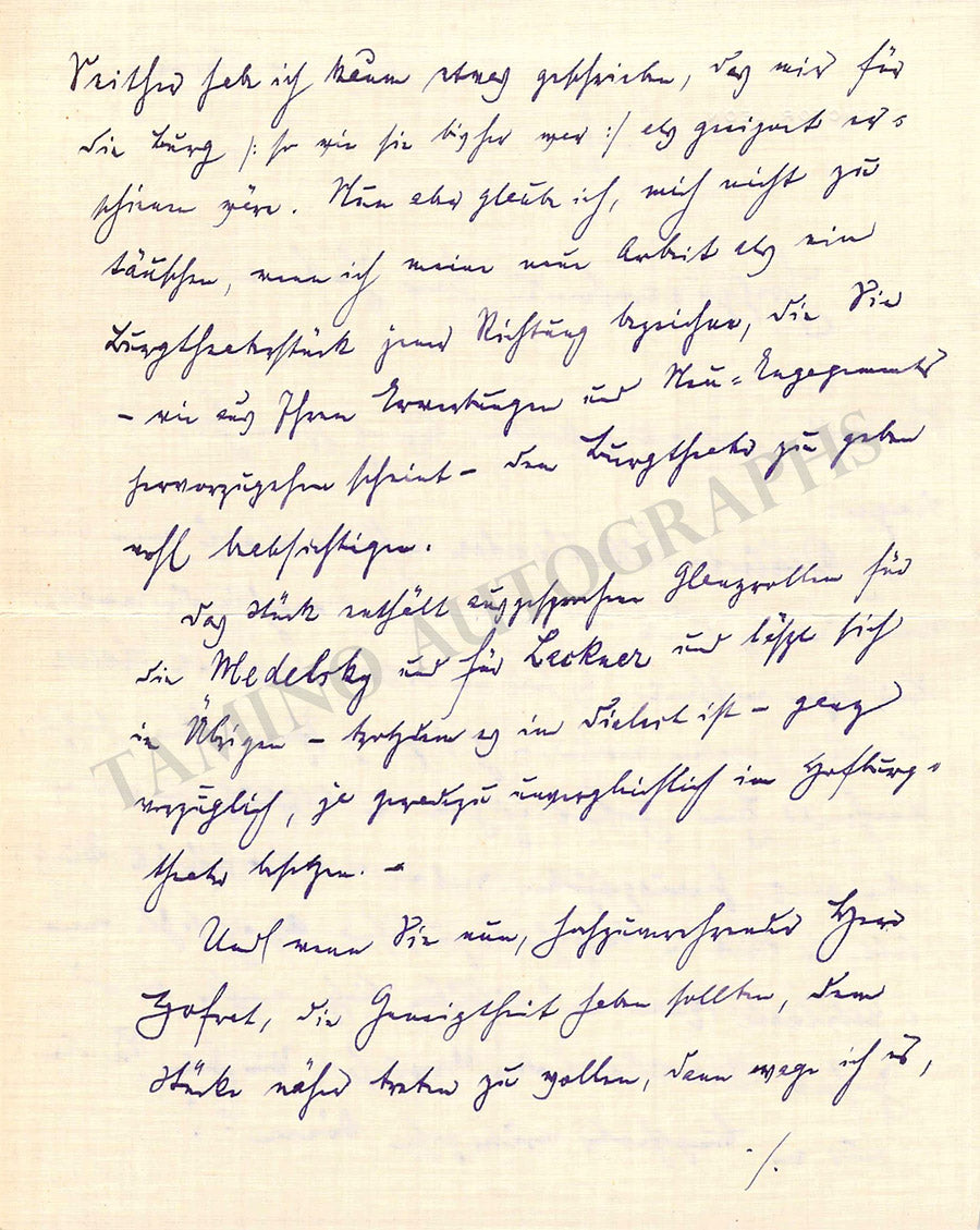 Autograph letter with his letterhead written in German (sold untranslated) and signed by him, dated in Vienna, July 6, 1919.  Size is 6.1 x 7.7 inches, 3 written pages in 2 sheets, in excellent condition.