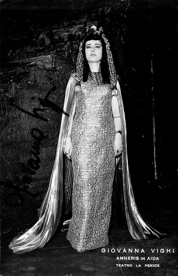 Italian mezzo-soprano (1925-?), signed photo, shown as Amneris in Verdi's Aida. Stamped on verso by photographer Ermanno Reberschak, Teatro La Fenice, Venice. Size is 4.5 x 7 inches, in excellent condition.