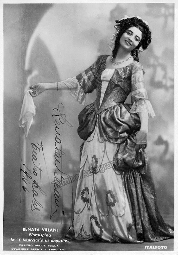 Italian soprano, signed photo, shown as Fiordispina in Cimarosa's L'impresario in angustie, dated in 1946. Size is 4 x 6 inches, in excellent condition.