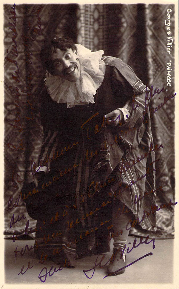 French baritone (? 1884 - ?1963), signed postcard photograph, shown as Tonio in Leoncavallo's I Pagliacci, inscribed and dated in 1919. Photo by F. Van Boghout, Arvers. Size is 3.25 x 5.25 inches, in excellent condition.