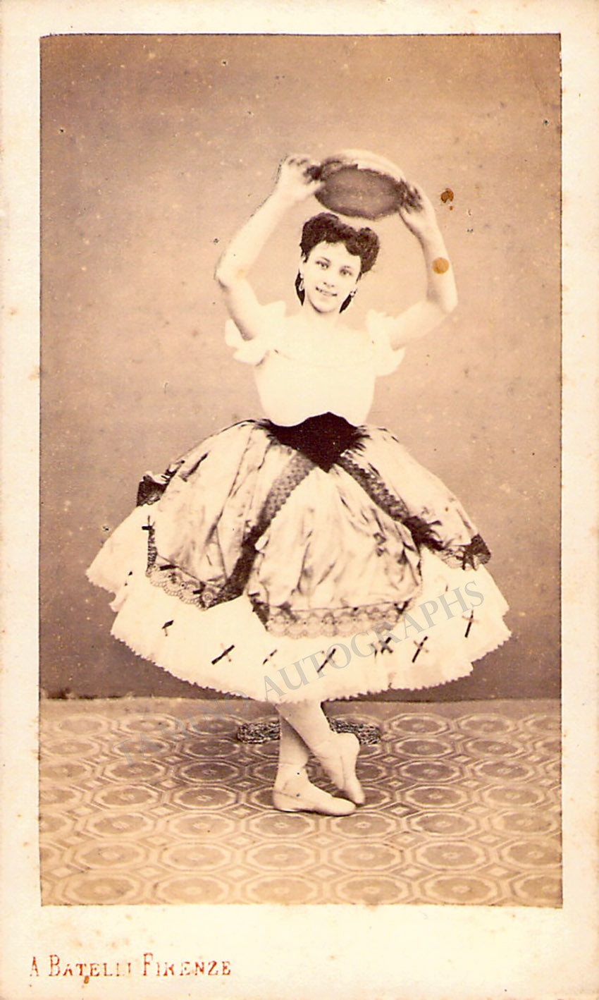 Original carte-de-visite (CDV) of her by photographer Achille Batelli. Size is 2.5 x 4.1 inches, minor stains, otherwise in excellent condition.