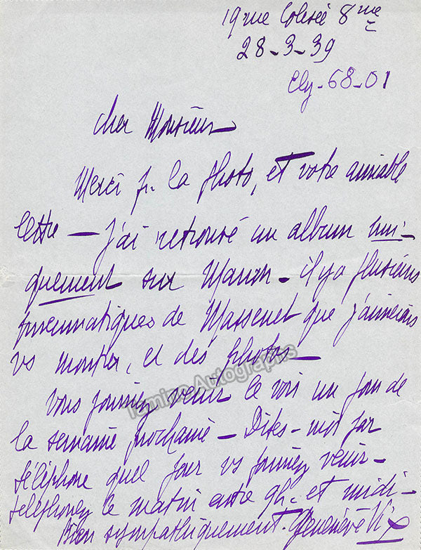 French soprano (1879-1939).  Autograph letter signed, 1 page, written in French, sold untranslated, dated in 1901. Bold handwriting and signature. Size is 5.75 x 7.5 inches, in excellent condition.