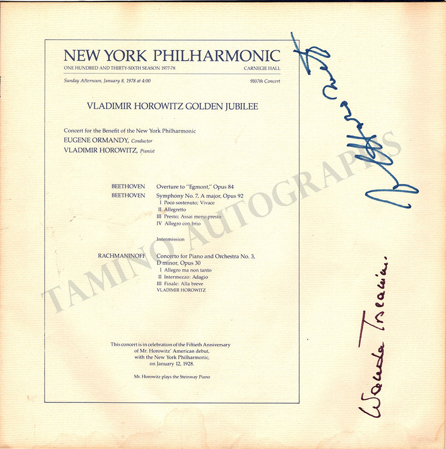 Vladimir Horowitz, Wanda Toscanini Autographs Signed Program