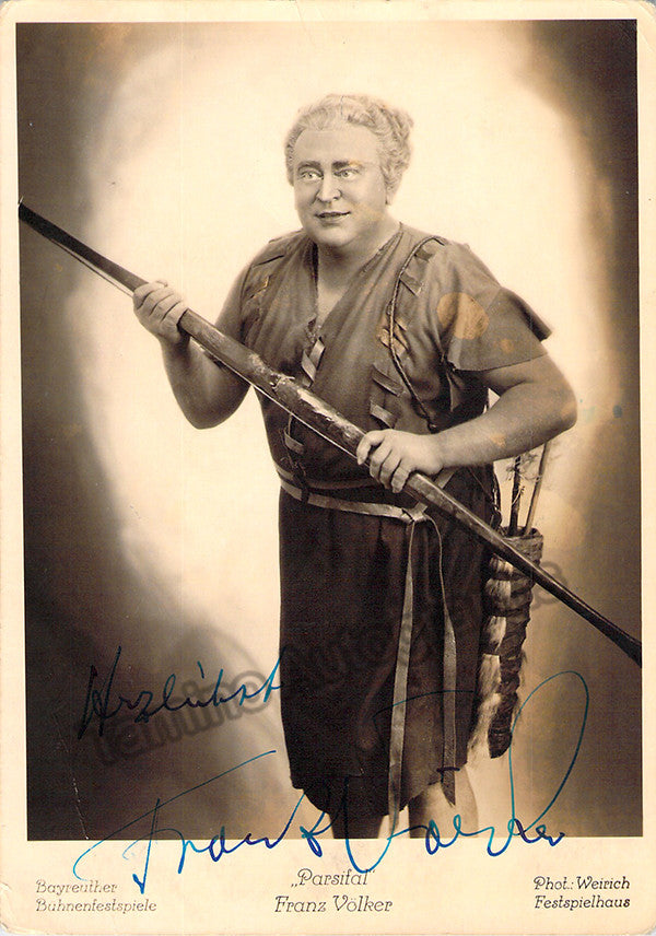 German tenor (1899-1965), signed photo postcard, shown in the title role in Parsifal. Size is 4 x 6 inches