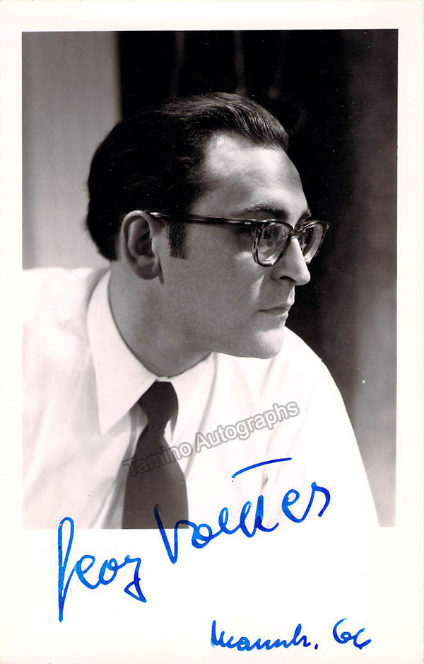 German baritone (1923-2006), signed photograph, shown as himself. Stamped on verso by photographer Erna D. Kroher.  Size is 3.5 x 5.5 inches, in excellent condition