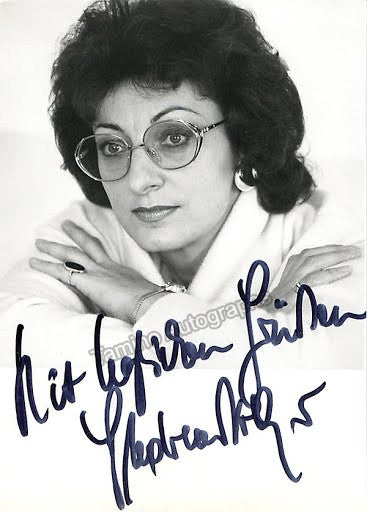 Signed photo of the Austrian soprano (b.1943) shown as herself, dated in 1995. Size 4 x 5.75 inches.