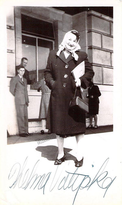 Signed photograph, shown as herself, inscribed. Blind stamped by photographer. Size is 5 x 6.75 inches, in excellent condition.