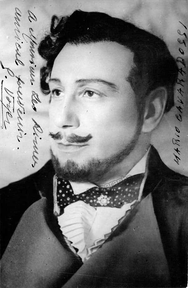 Signed postcard photograph, shown as Mario Cavaradossi in Tosca, inscribed. Size is 3.75 x 5.75 inches, very slight paper loss on top right corner, but otherwise in excellent condition.