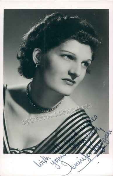 English soprano (1925-1974), signed photo, shown as herself, handwritten with a sentiment. Size is 3.5 x 5.5 inches.